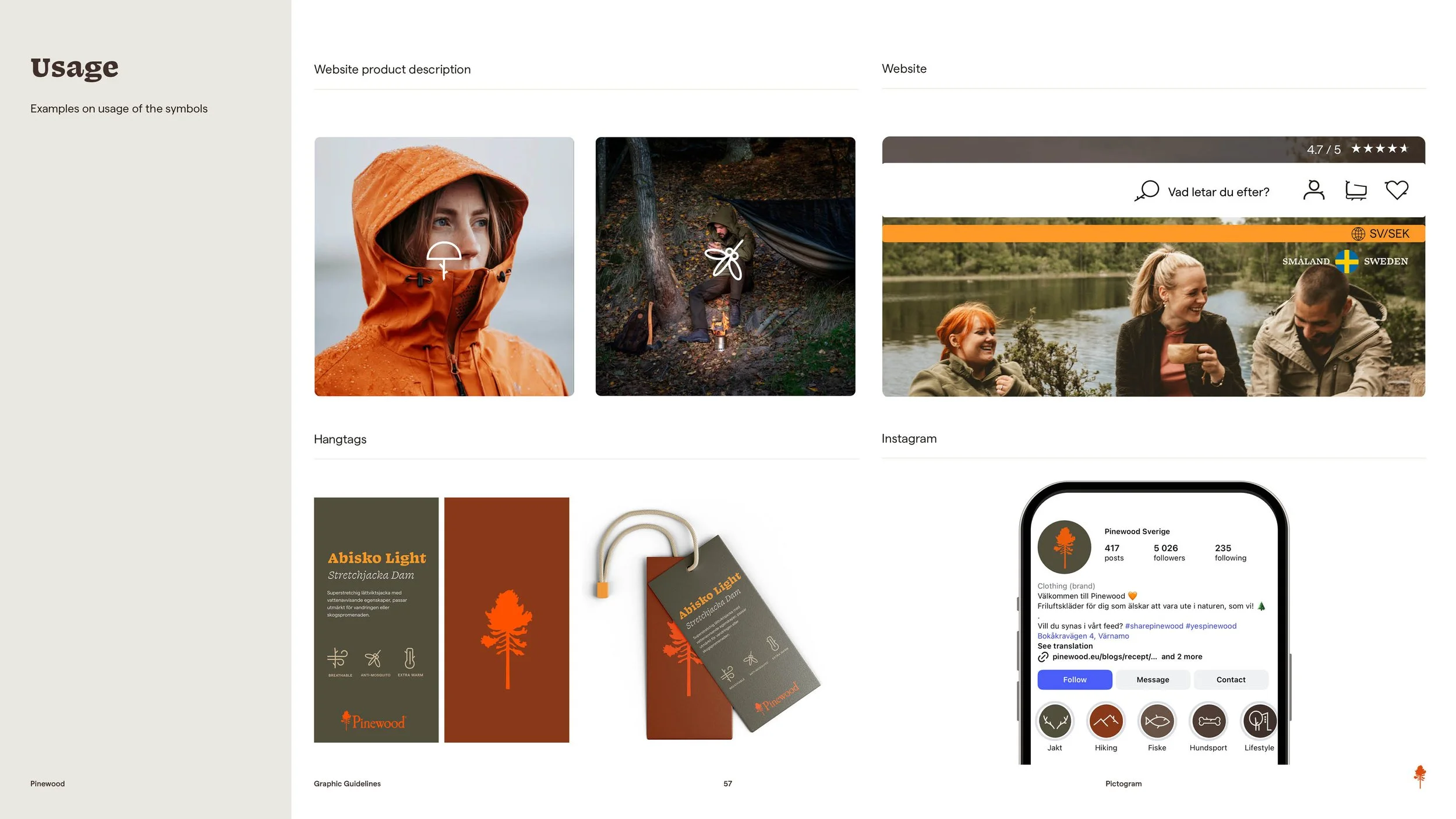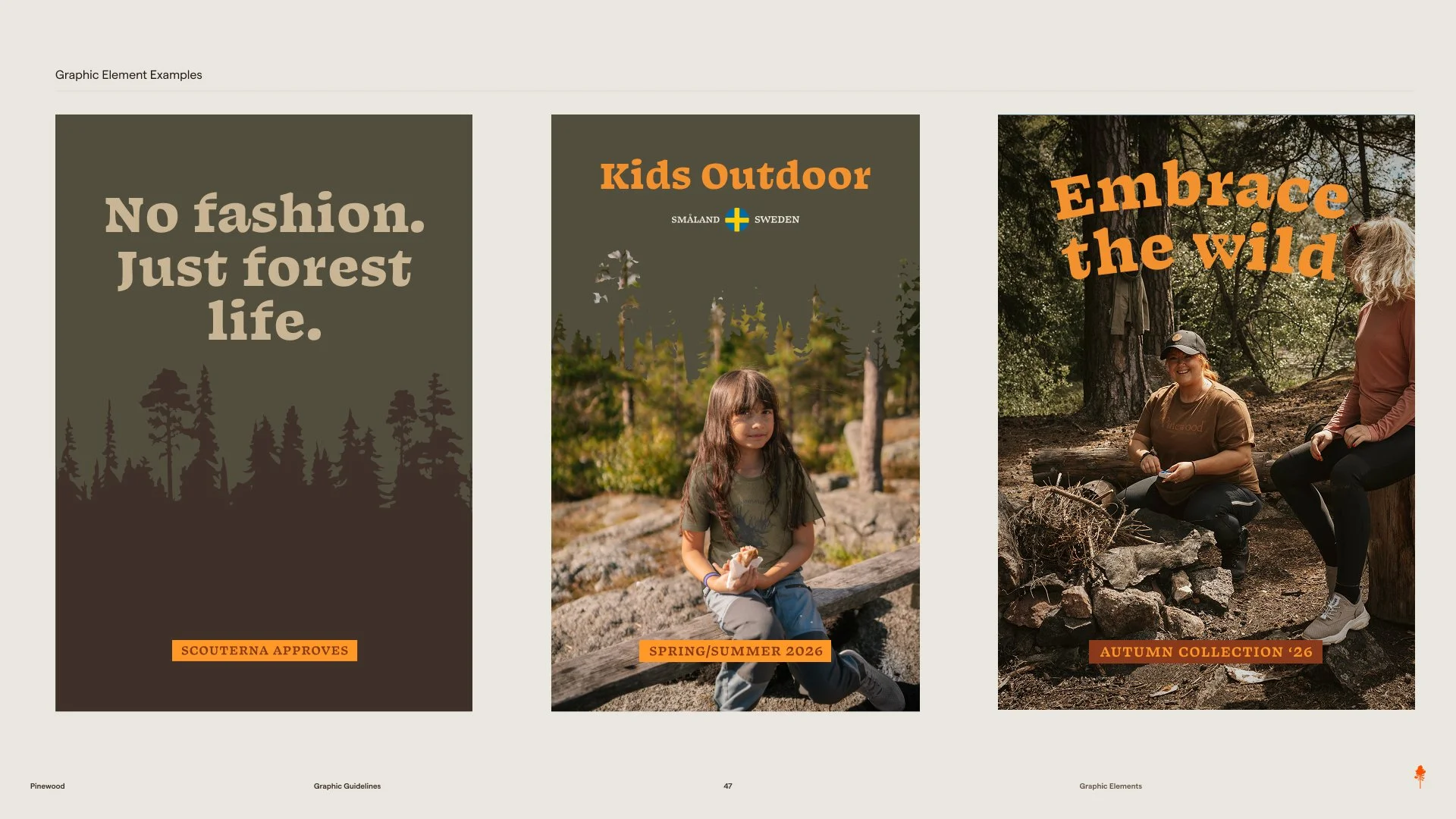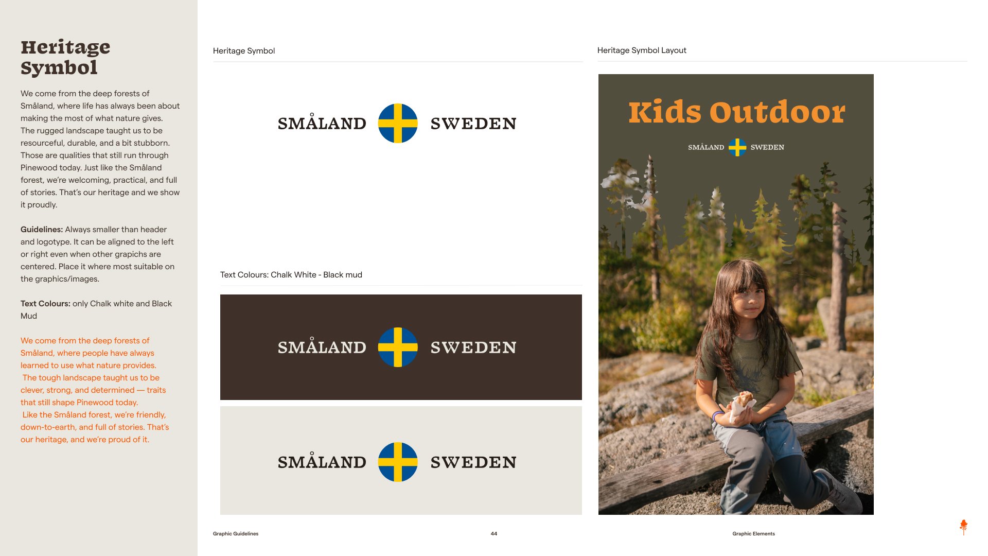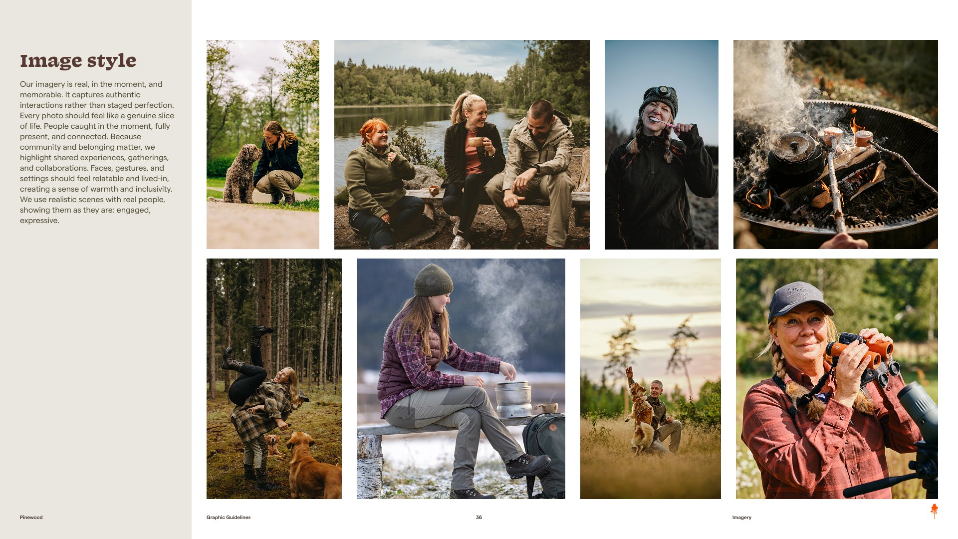 Pinewood is a family-owned company from Småland, deeply rooted in the forest, creating clothing and gear for people who love hiking, hunting, fishing, and spending time outdoors. They needed a distinct and cohesive brand book to define their graphic guidelines. The result is a comprehensive brand book that combines visual guidelines with the brand’s vision of life in the forest.
