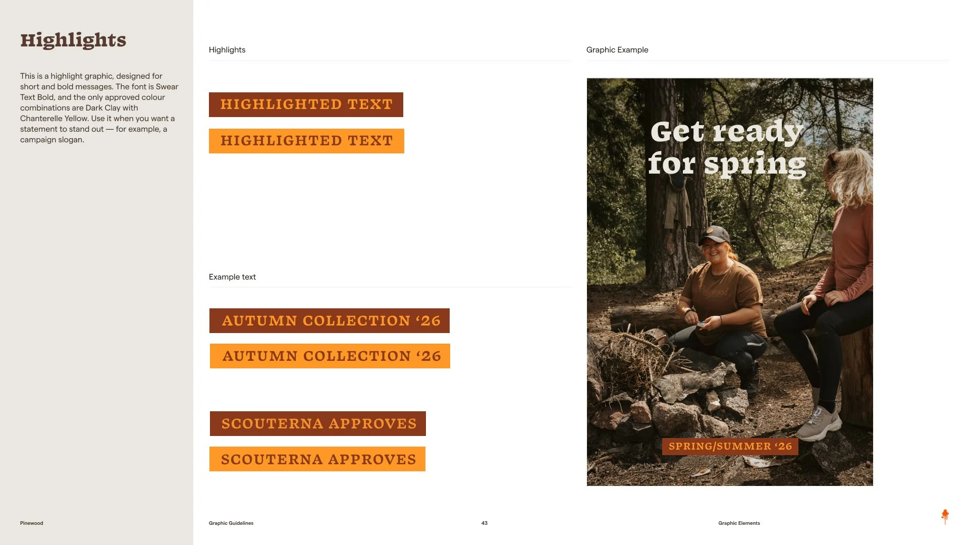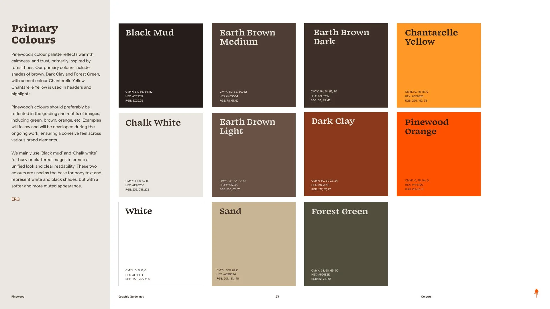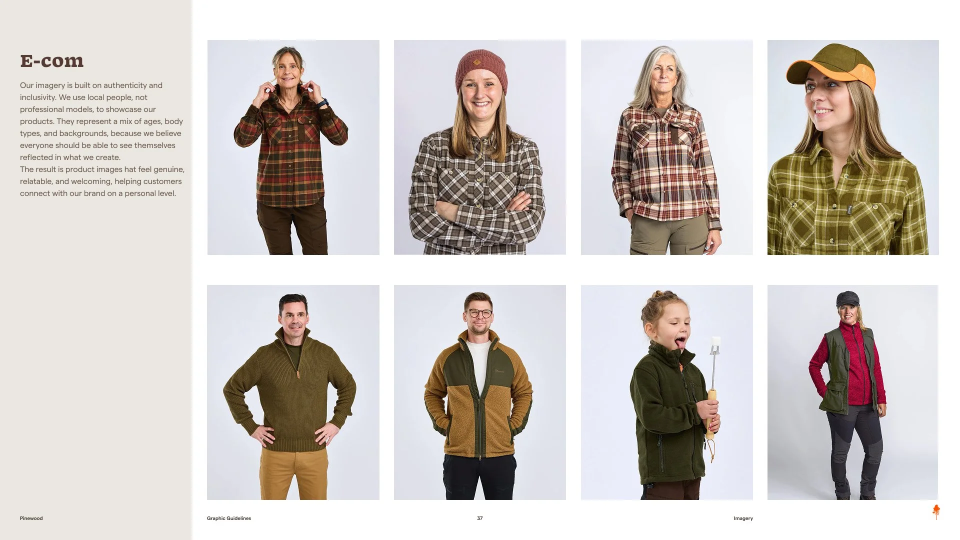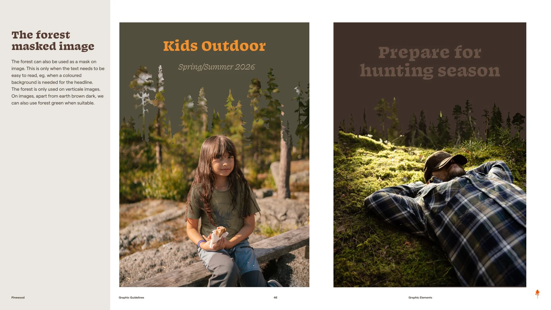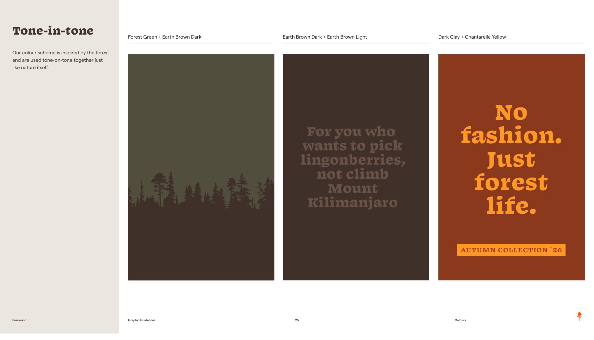Pinewood is a family-owned company from Småland, deeply rooted in the forest, creating clothing and gear for people who love hiking, hunting, fishing, and spending time outdoors. They needed a distinct and cohesive brand book to define their graphic guidelines. The result is a comprehensive brand book that combines visual guidelines with the brand’s vision of life in the forest.